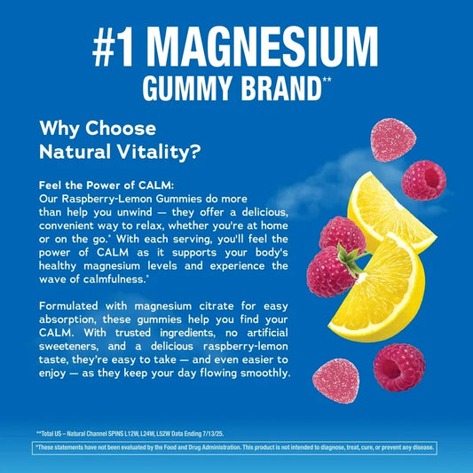 CALM: Gomitas Natural Vitality Citrato Magnesio Frambuesa & Limón x60 Unidades