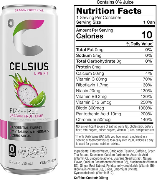 Bebida Energética Celsius Fizz Free Dragon Fruit Lime Sin Azúcar 355 mL