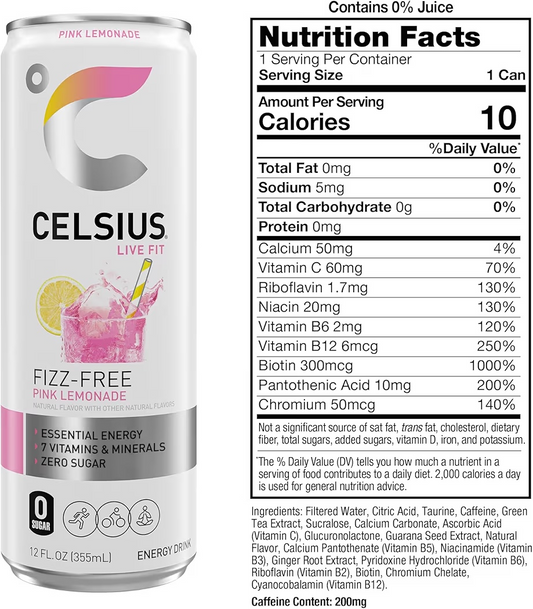 Bebida Energética Celsius Fizz Free Pink Lemonade Sin Azúcar 355 mL
