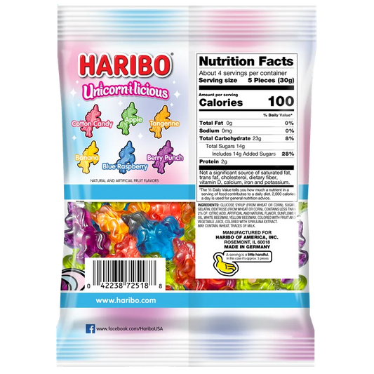 Haribo Unicornios Unicorn-i-licious Tamaño Grande 227g