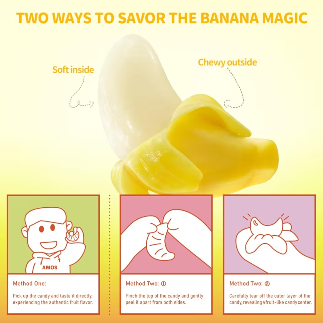 🍌🎉 Diviértete mientras disfrutas con las Gomitas de Banana Pelables Amos Peelerz, el dulce perfecto para los amantes de los sabores tropicales. Cada gomita tiene forma de banana y se puede pelar como una fruta real, ofreciendo una experiencia única, suave y deliciosa. Su sabor dulce y textura esponjosa las hacen irresistibles para grandes y chicos. 🌟