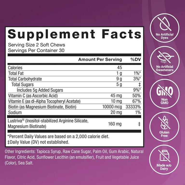 HAIR GROWTH: Caramelos Masticables Force Factor Accelerator Frutos Rojos x60 Unidades
