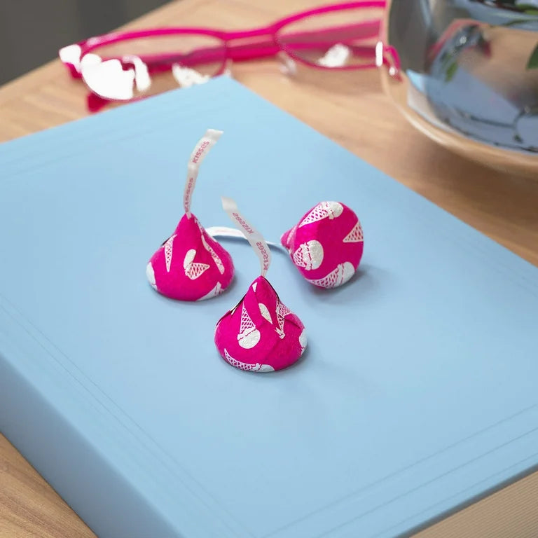 Deléitate con el delicioso y cremoso Hershey's Kisses Helado de Fresa. Este delicioso postre combina el rico y suave sabor del chocolate Hershey's con el refrescante sabor de las fresas, creando un equilibrio perfecto entre dulzor y acidez. Cada bocado está envuelto individualmente en el icónico papel de aluminio plateado, lo que lo hace fácil de disfrutar para llevar o compartir con amigos y familiares.