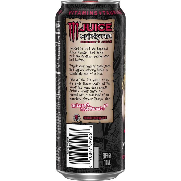 🍏⚡ Despierta tu energía con el intenso sabor de Monster Energy Juice Bad Apple, una mezcla explosiva de jugo natural de manzana y la potencia inconfundible de Monster Energy. Refrescante, audaz y con un toque ácido, es la bebida perfecta para quienes buscan energía real con sabor único. 🍎🔥