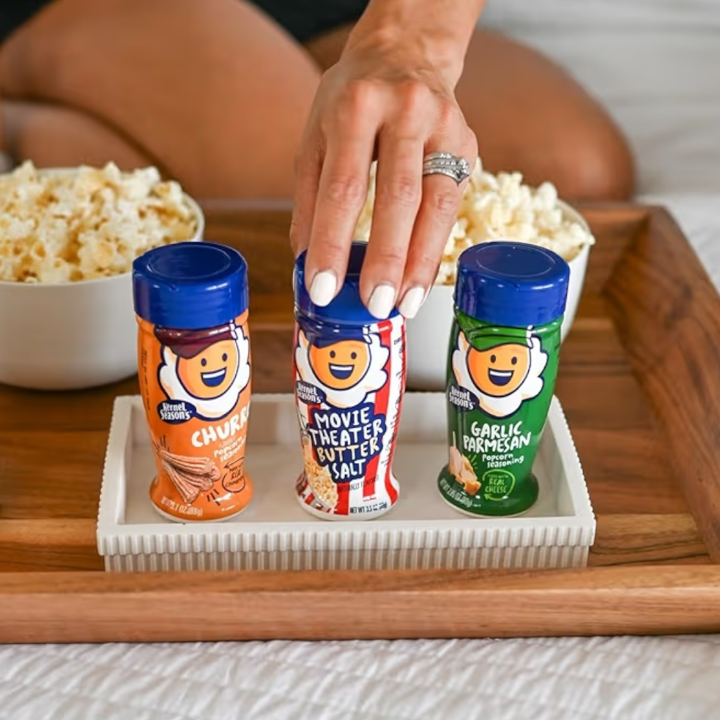 🍿🧈 Lleva el sabor del cine a casa con el sazonador Kernel Season’s Butter Salt, una mezcla perfecta de mantequilla y sal que realza el sabor de tus palomitas al instante. Ideal para quienes aman el auténtico toque salado y mantequilloso de las palomitas recién hechas. ¡Agítalo, espolvorea y disfruta! 😋🎬