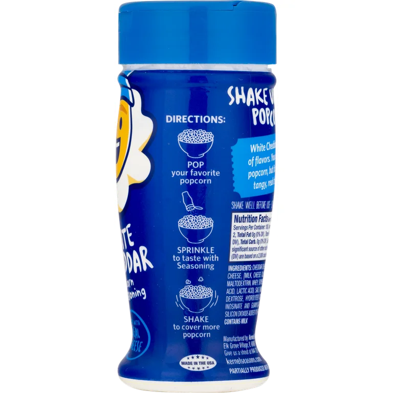 Transforma tu experiencia con las palomitas de maíz con Sazonador Palomitas de Maíz Kernel Season’s Queso Cheddar Blanco. Este sazonador de 80 g aporta un toque gourmet a tu bocadillo favorito, infundiéndolo con el rico y cremoso sabor del queso cheddar blanco. Perfecto para noches de cine o reuniones casuales, este innovador sazonador eleva las palomitas simples a un delicioso manjar con sabor a queso. Simplemente espolvoréalo para un impulso instantáneo de sabor que deleitará tu paladar y te dejará queriendo más. ¡Disfruta del máximo placer de las palomitas en cada bocado!