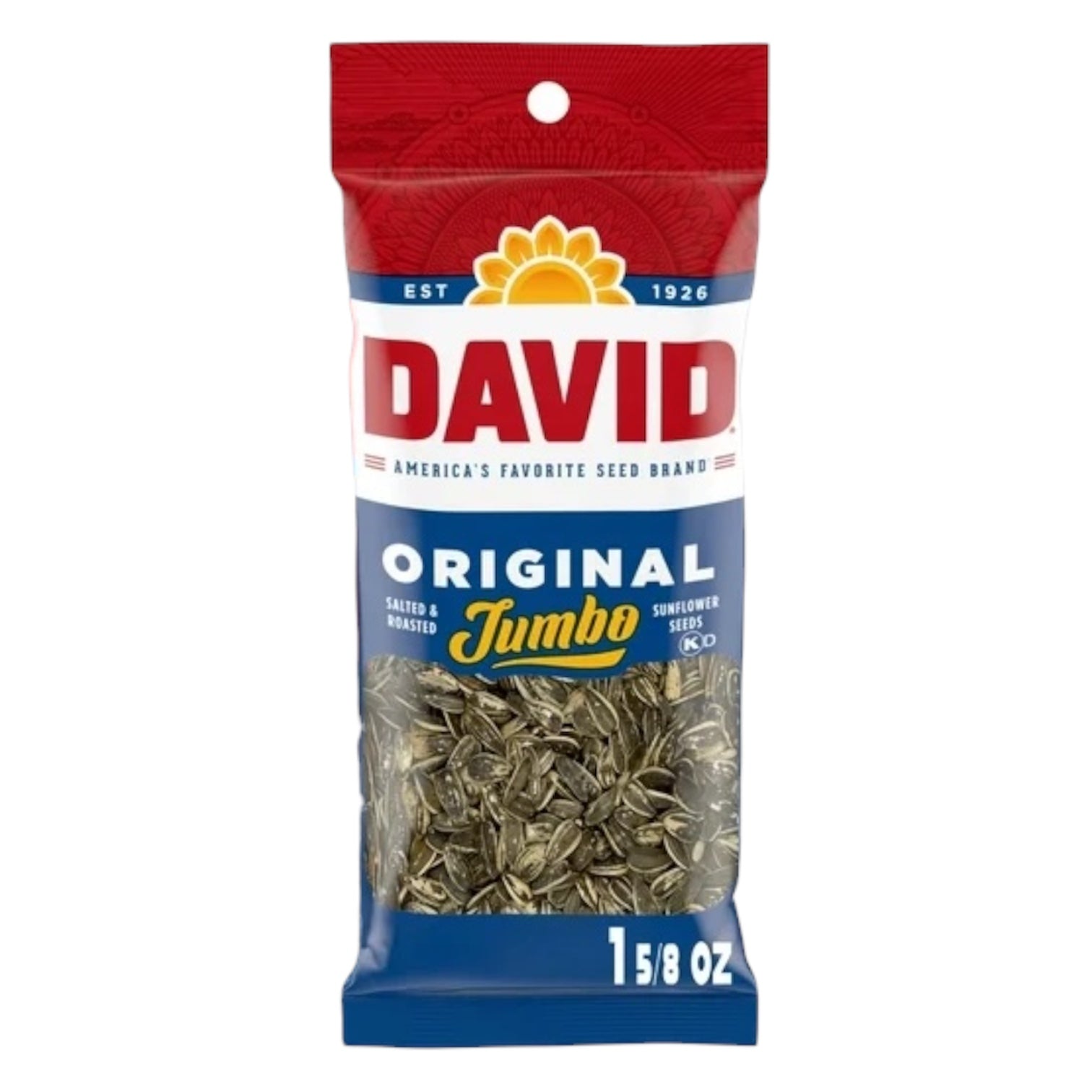 🌻🥜 Disfruta el sabor clásico y el tamaño extra de las Semillas de Girasol David Original Jumbo, tostadas y sazonadas para ofrecer un snack crujiente, natural y lleno de sabor. Perfectas para acompañar tus actividades diarias, viajes, deporte o momentos de antojo. Una opción práctica y deliciosa para quienes buscan snacks salados importados de alta calidad.